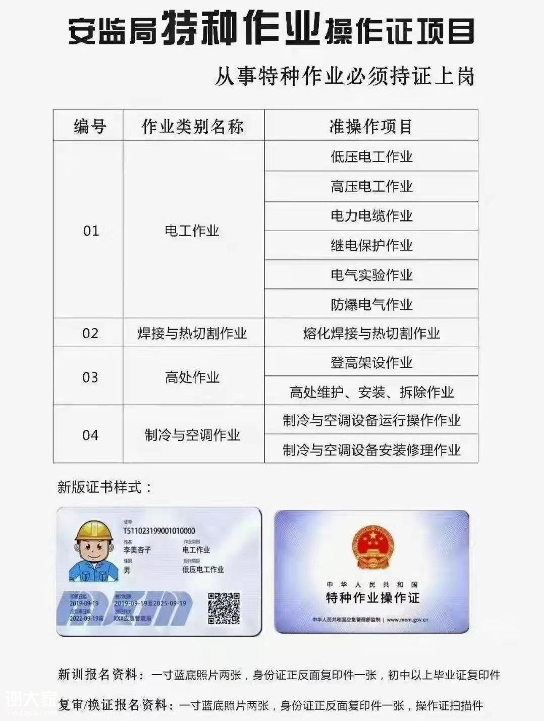 2、安监局特种作业操作证:电工证、焊工证、高空证、制冷证。全部上国网查,稳定