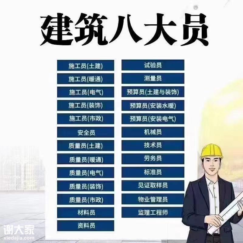 1、建委八大员:资料员,施工员、安全员、材料员、质量员等