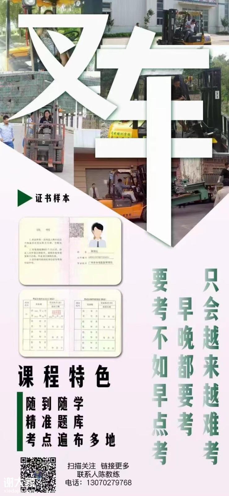 我司还有考前模拟考,到正规考试场地练习一到两天。更好的上手。所以考叉车证只要你知道坑点,练习好了。考叉车证不是问题。我司叉车证的通过率是百分之九十五以上的。想考叉车证的朋友,请把你交给我们助你提升成功。还有不明白的可以咨询