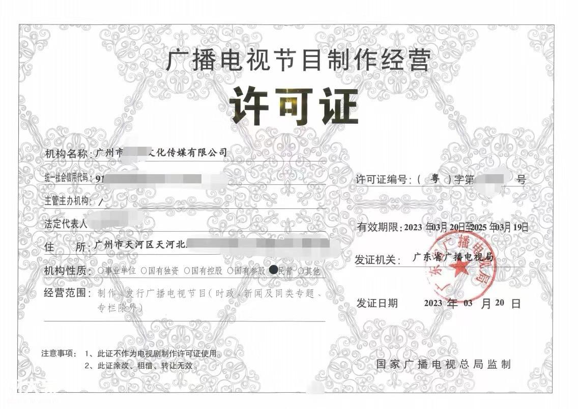 4、统一社会信用代码证书(经营范围要包含广播电视节目制作)或营业执照(经营范围要包含(经营范围要包含广播电视节目制作);