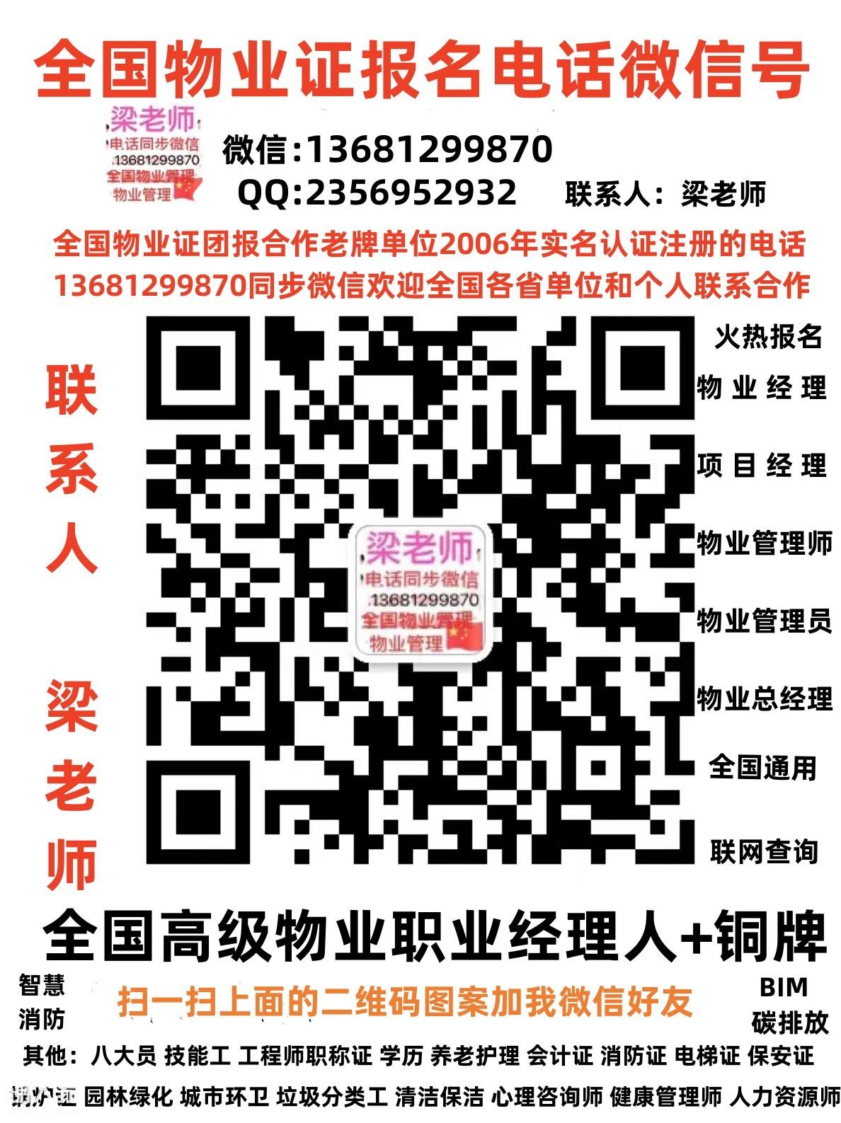 徐州物业经理项目经理物业师八大员架子工叉车电焊工电工抹灰工水暖工报名入口 物业经理,项目经理报名咨询梁老师,物业管理师,物业总经理报名咨询梁老师。带铜牌物业职业经理人每月一期考试报名咨询梁老师 全国火热报名环卫行业证书:清洁项目经理、河道清洁工程师报名咨询梁老师、高级清洁工程师、河道保洁员报名咨询梁老师、城市环卫管理师、城市环卫工程师报名咨询梁老师、城市环卫管理师、环卫作业项目经理报名咨询梁老师、城乡环卫一体化项目经理、环卫作业项目经理报名咨询梁老师、环卫PPP项目经理、智慧环卫工程师报名咨询梁老师、垃圾处理工程师、垃圾转运操作员报名咨询梁老师、垃圾转运操作员、园林绿化工程师报名咨询梁老师