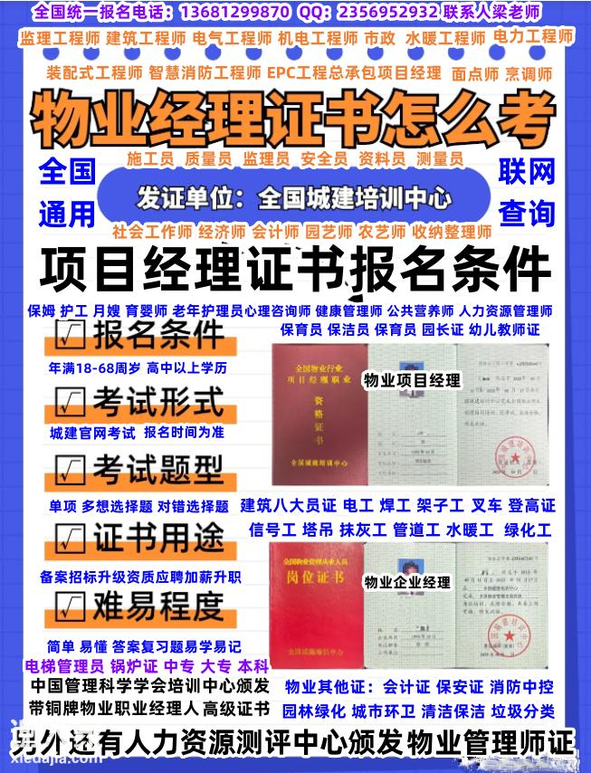 徐州监理工程师园林绿化工程师城市环卫工程师物业经理项目经理物业管理师在哪考试 一个物业管理企业的发展前途,归根结底取决于经理人团队的发展趋势和方向,全国火热报名的物业经理项目经理物业管理师物业总经理报名时间电话添加梁老师微信联系咨询报名详情 物业培训课程:《物业管理基础及物业管理条例》报名咨询梁老师《物业管理实务(案例分析)》 园林绿化工程师,园林绿化养护项目经理,城市环卫管理师,城市环卫工程师,垃圾处理工程师,垃圾分类工程师报名咨询梁老师,人力资源管理师、物流管理师报名咨询梁老师、物业职业经理人,健康管理师报名咨询梁老师,心理咨询师,公共营养师报名咨询梁老师,清洁管理师,保洁项目经理报名咨询梁老师,城市排水项目经理,城市排水工程师报名咨询梁老师