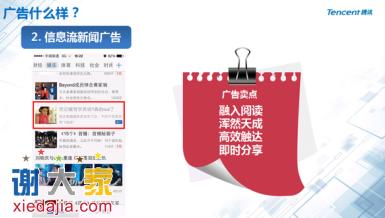 据了解,腾讯新闻客户端广告隶属腾讯智汇推。智汇推是整合腾讯资讯、娱乐、社交三大体系优质资源,面向中小企业的网络效果营销服务,可以实现广告的精准投放,大幅提升广告效果。