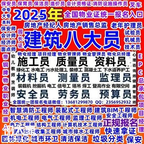 东莞物业经理项目经理报名电话电工焊工高空作业...