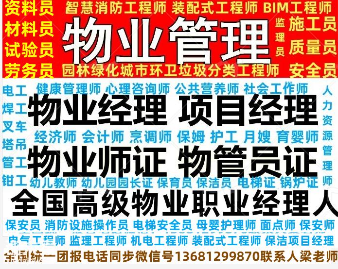 无锡物业经理项目经理物业管理师保洁管理师清洁项目经理报名电话电工焊工高空作业叉车塔吊抹灰工水暖工污水处理工保姆护工月嫂老年护理员报名电话